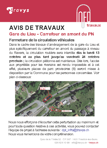 Ces travaux nécessitent une occupation temporaire du domaine public communal (DP) et une fouille sur domaine public, conformément au permis n°39.2025 délivré par la Commune du Chenit.